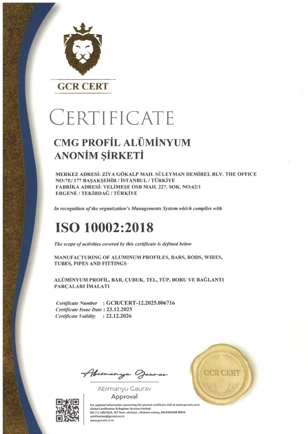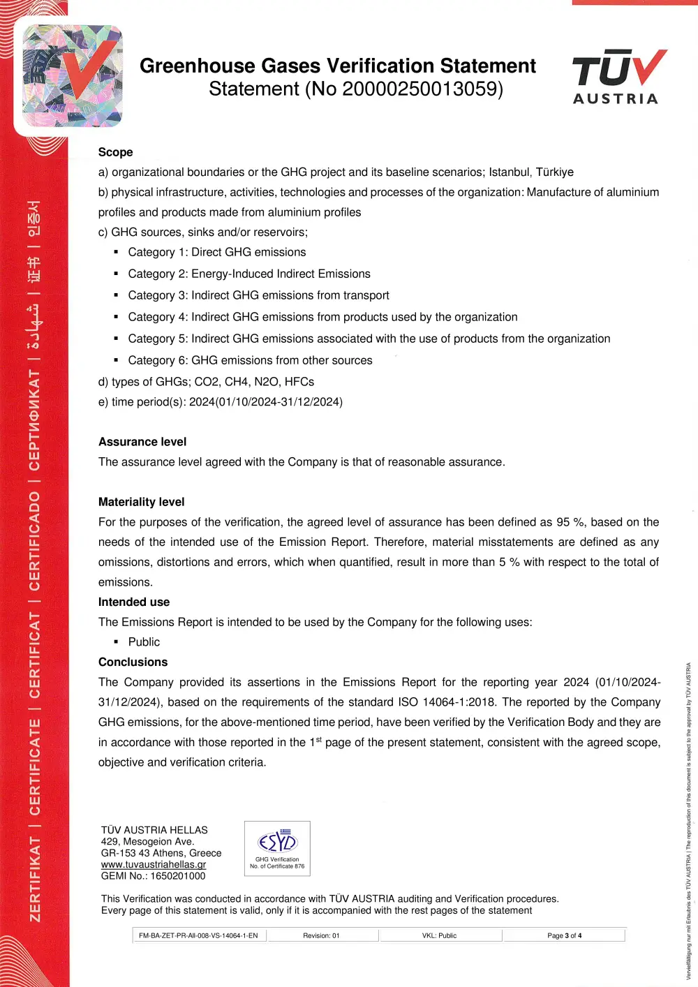 Bu sertifika, şirketimizin çevre dostu bir yönetim anlayışı benimsemesinin ve sürdürülebilir bir gelecek için katkıda bulunma amacının somut bir göstergesidir. Çevre dostu uygulamalara olan bağlılığımızı perçinleyen bu belge, hem şirketimizin prestijini artırmakta hem de pazarın bu alandaki talebine daha etkin yanıtlar vermemizi sağlamaktadır.